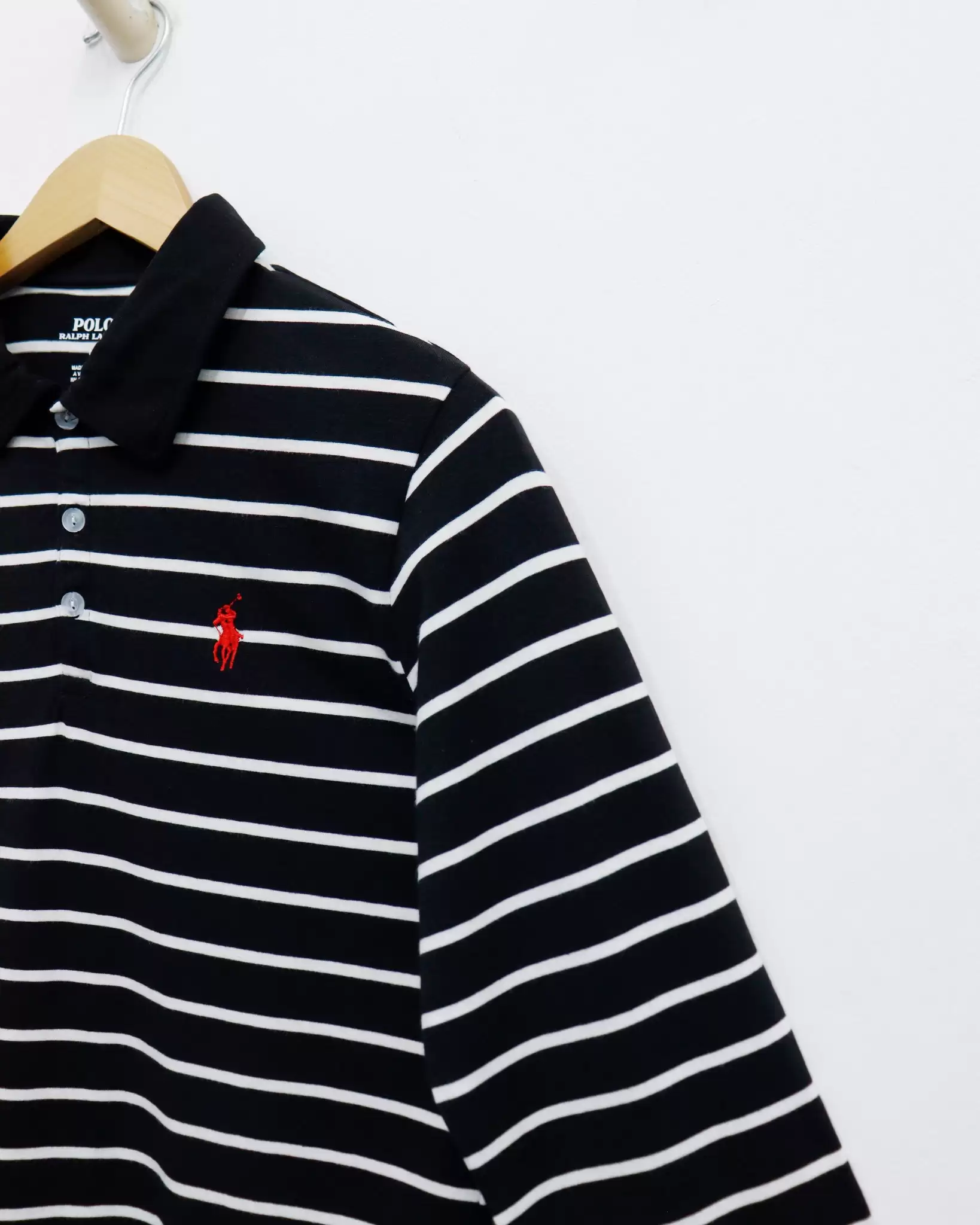 Áo thun Polo cổ bẻ, tay dài bo, sọc ngang, thêu logo