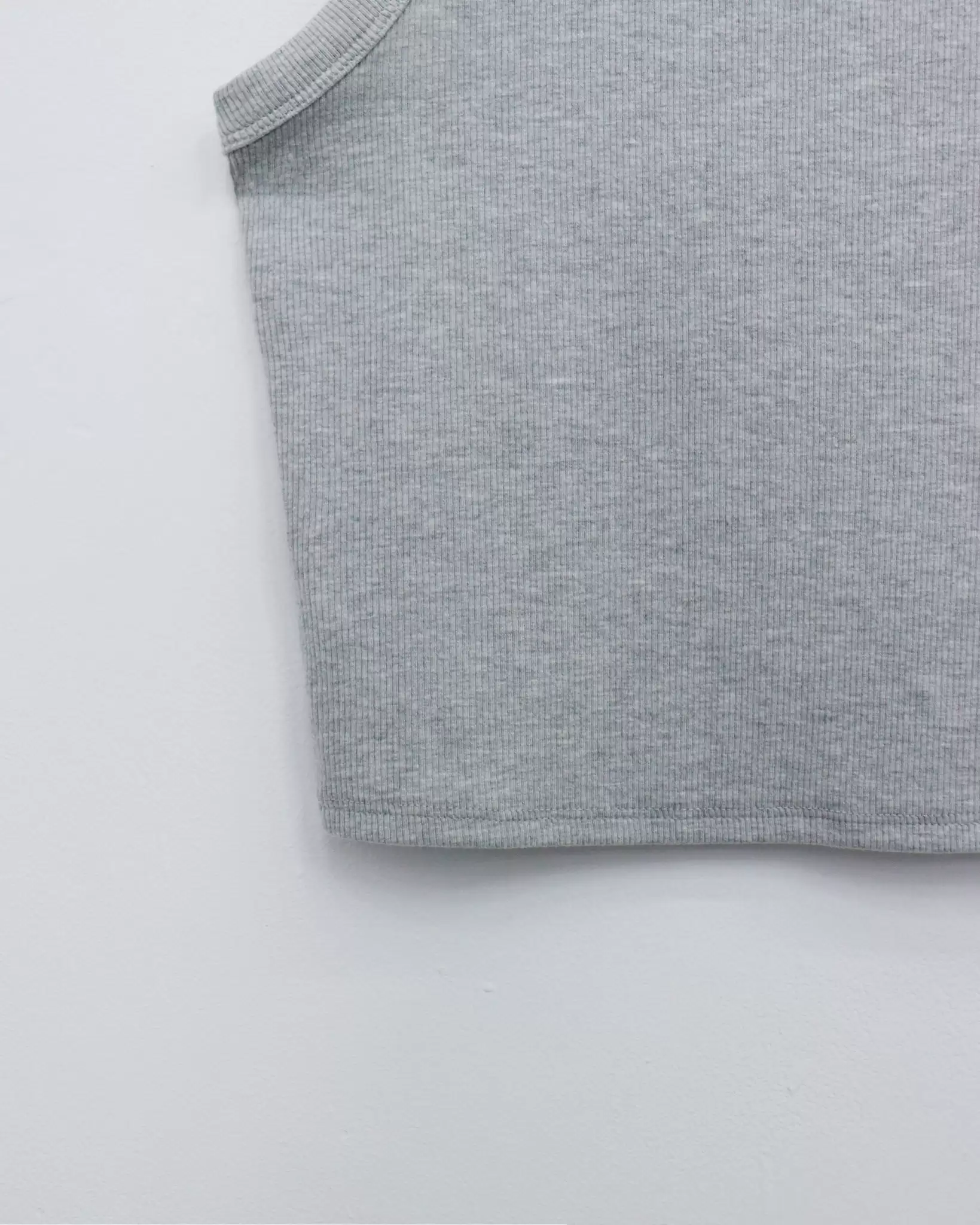 Chất liệu: Vải gân (ribbed) co giãn tốt, mềm mịn, tạo hiệu ứng các đường gân nhỏ chạy dọc thân áo — vừa thoáng mát vừa giúp áo giữ form đẹp.
