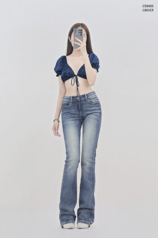 Phía sau áo nhún thun co giãn, ôm dáng vừa vặn mà vẫn dễ chịu khi vận động. Dáng áo croptop ngắn vừa, tôn eo và rất dễ phối với quần cạp cao, chân váy xòe hay jean ống rộng – đi chơi, đi cafe, chụp ảnh đều hợp vibe.