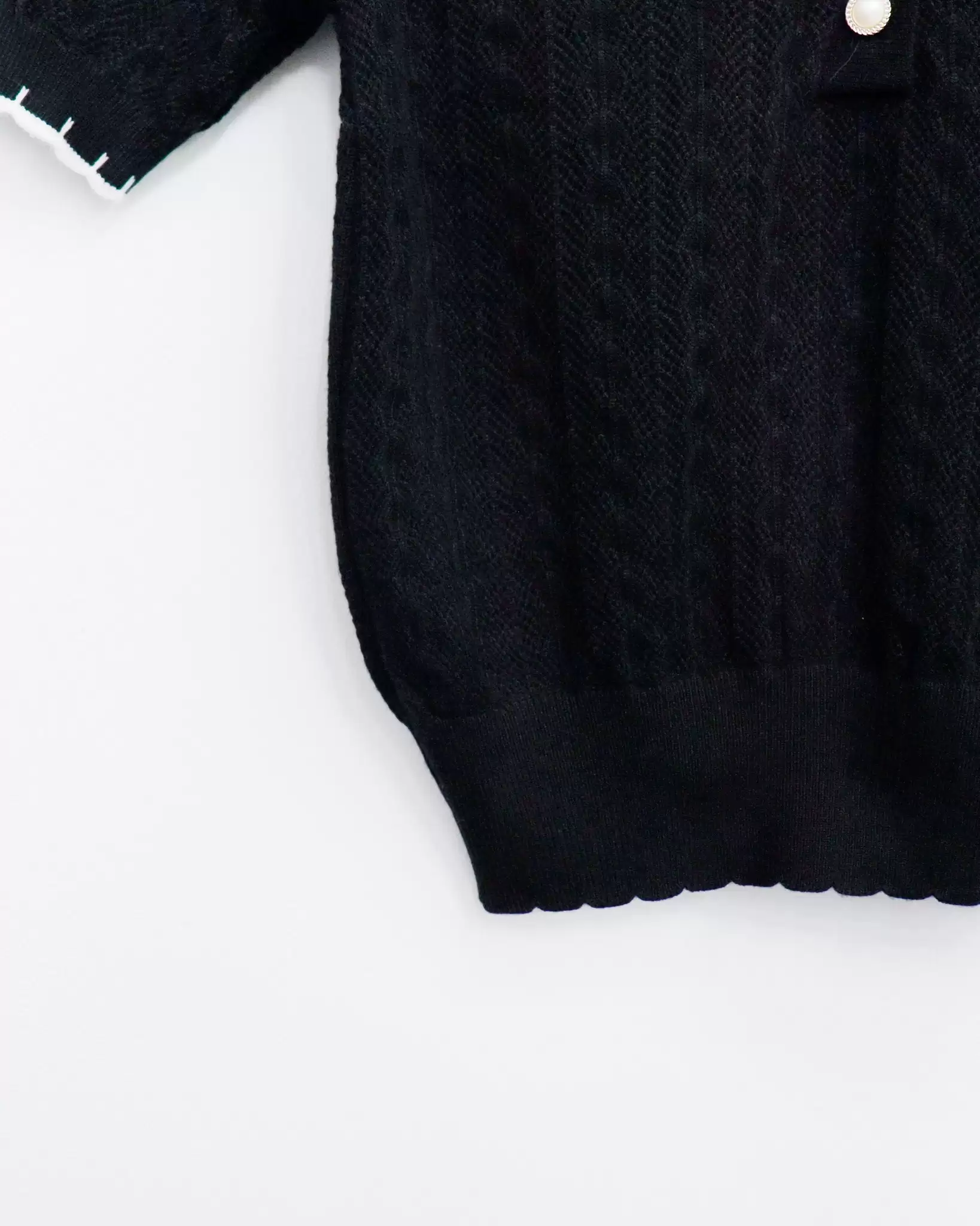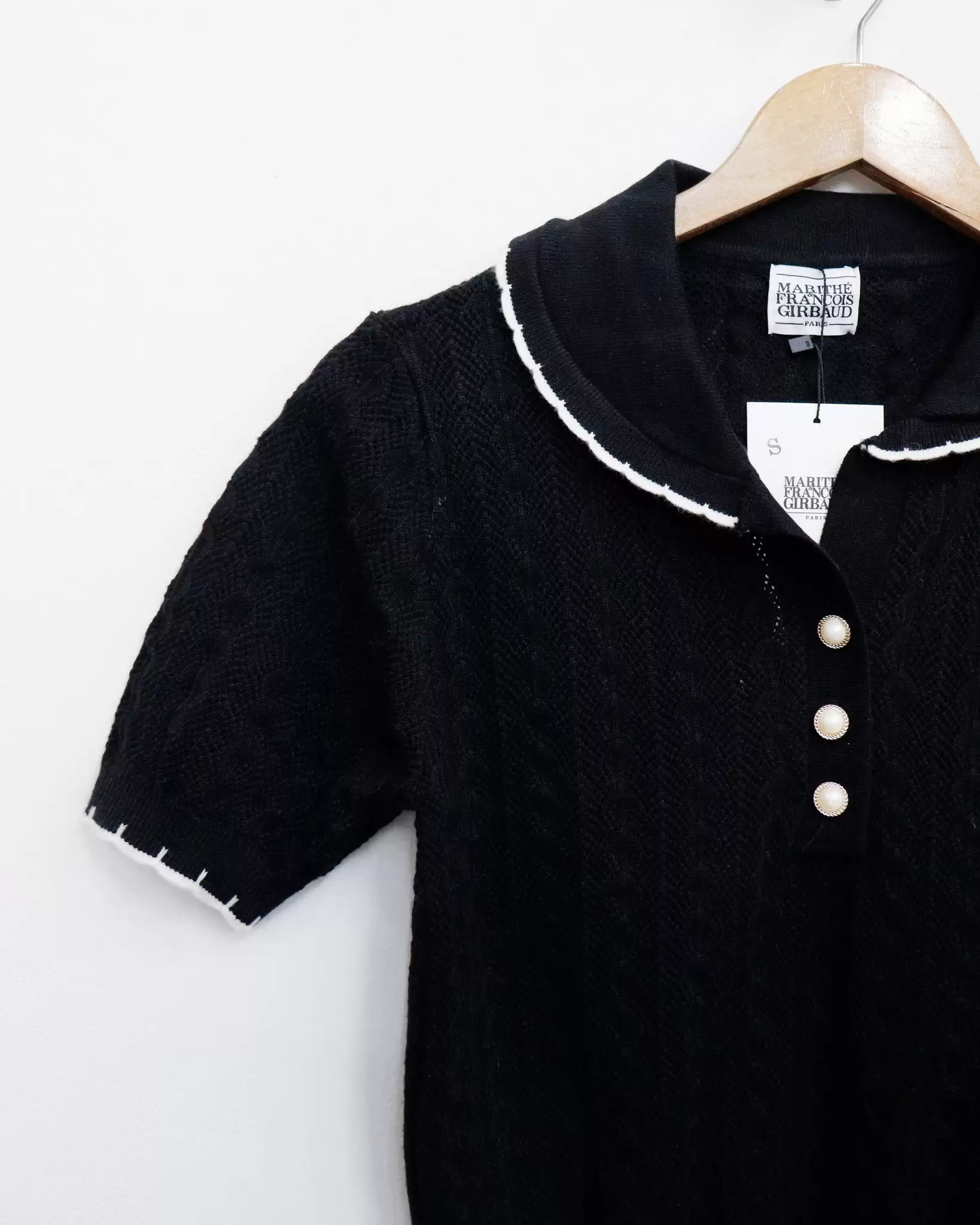 Áo len Marithe cổ bẻ viền tay lỡ nút kiểu