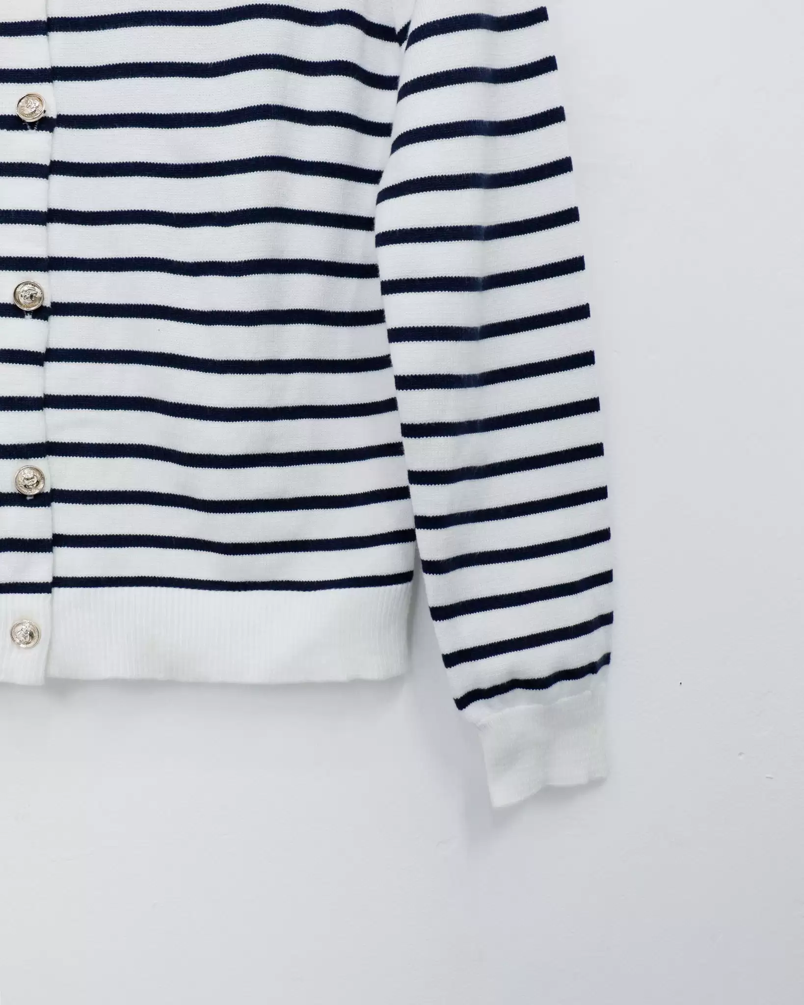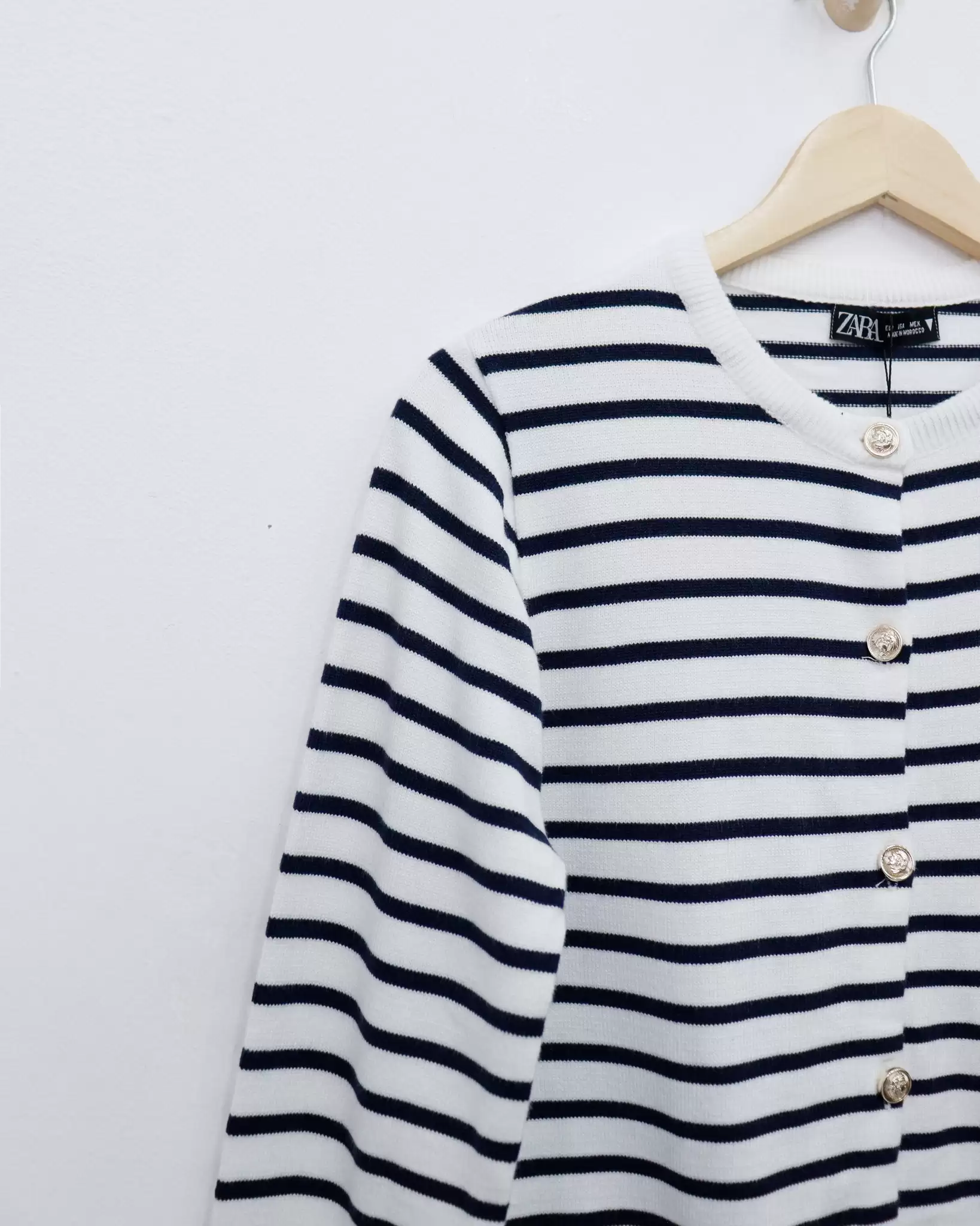 Áo Len ZARA Cổ Tròn Tay Dài – Cài Nút, Sọc Ngang Thanh Lịch