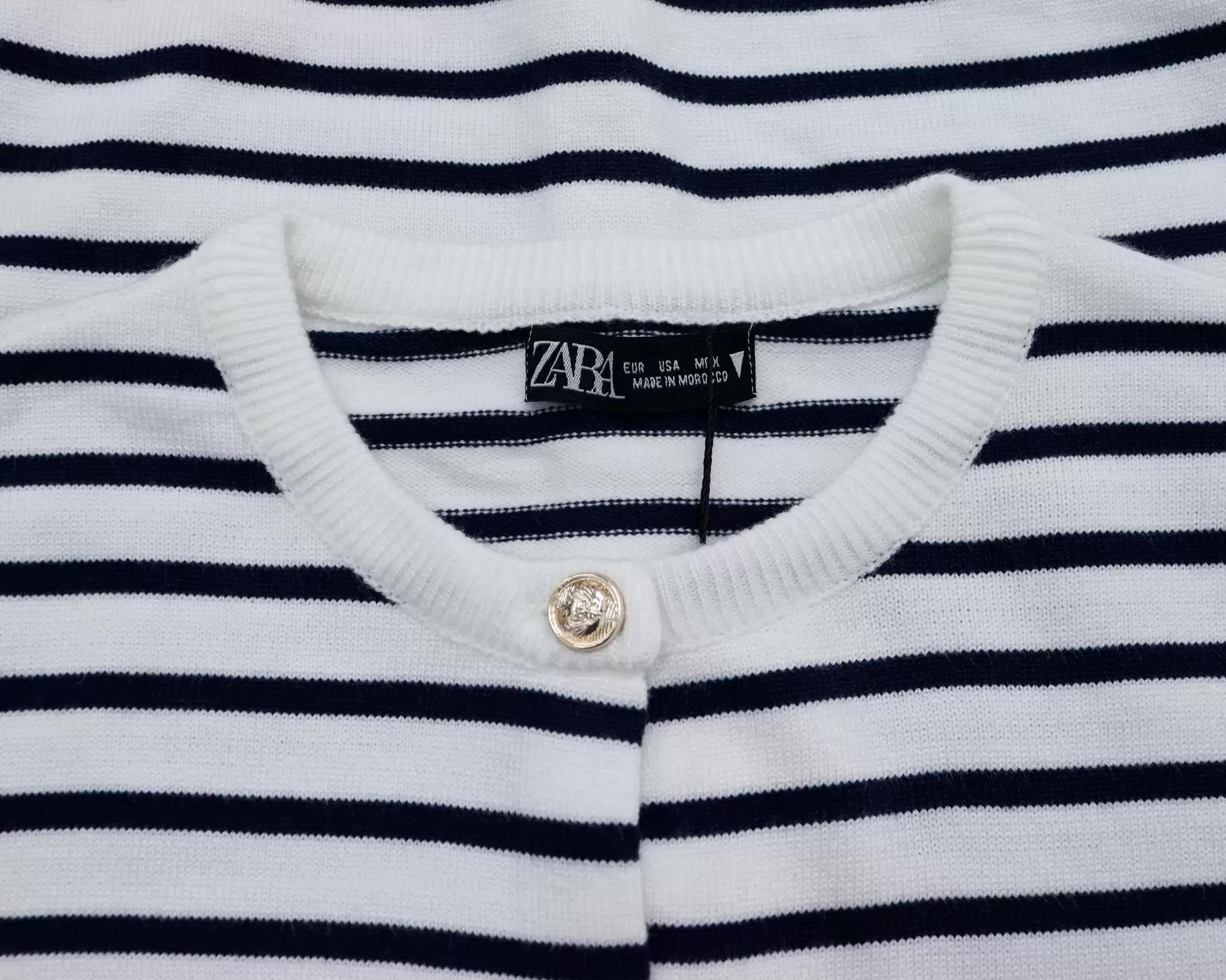Áo len ZARA cổ tròn,tay dài, cài nút, kiểu sọc ngang