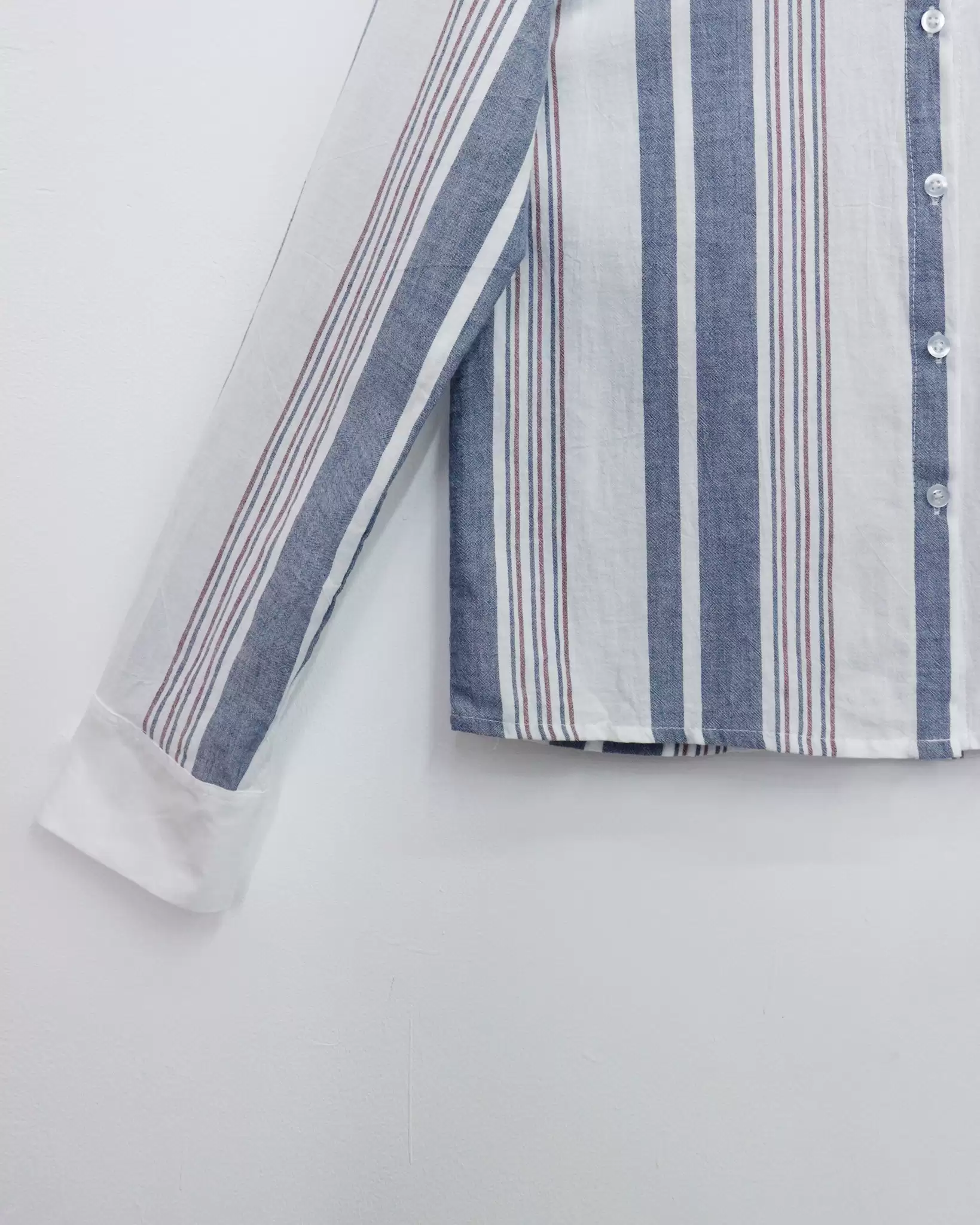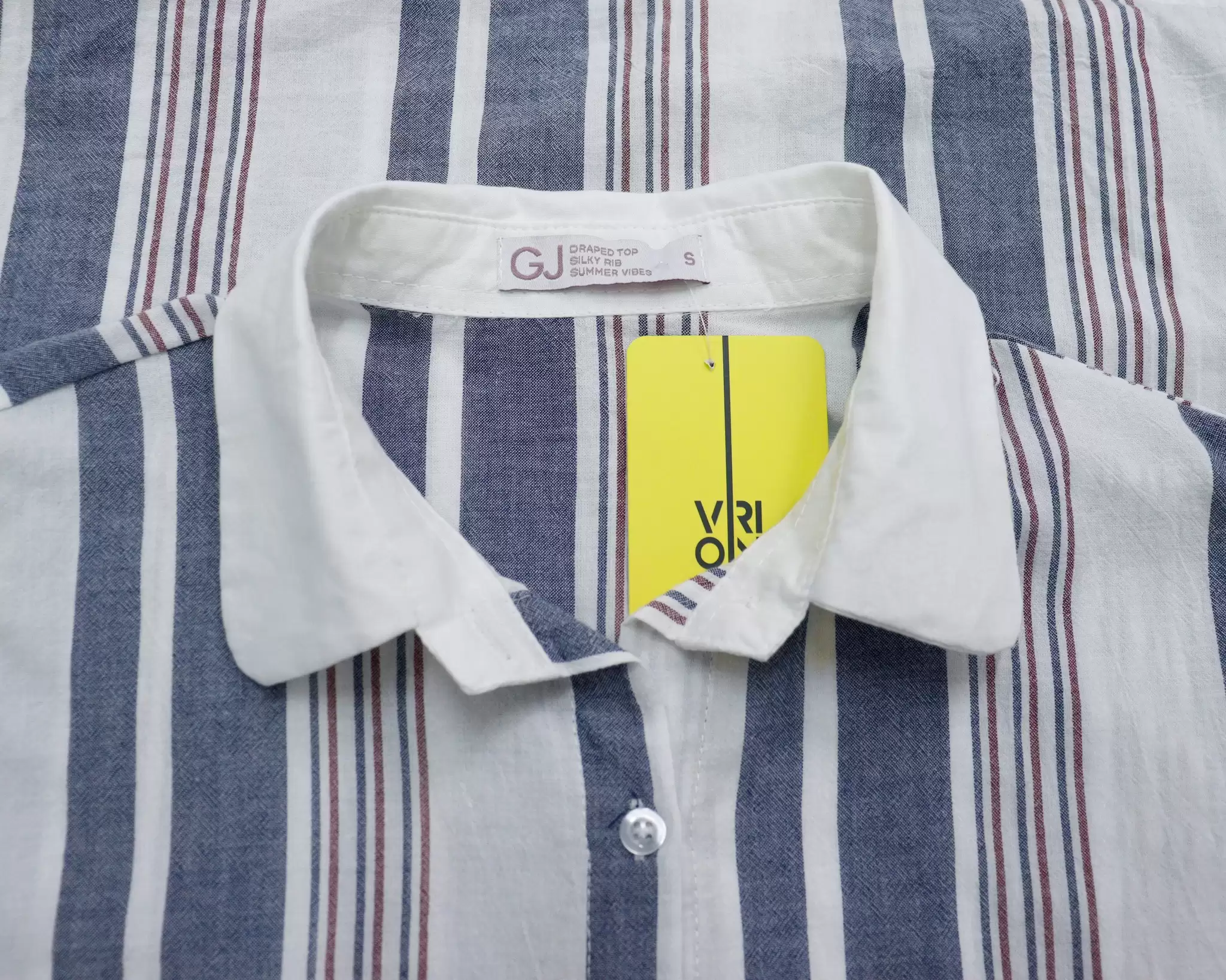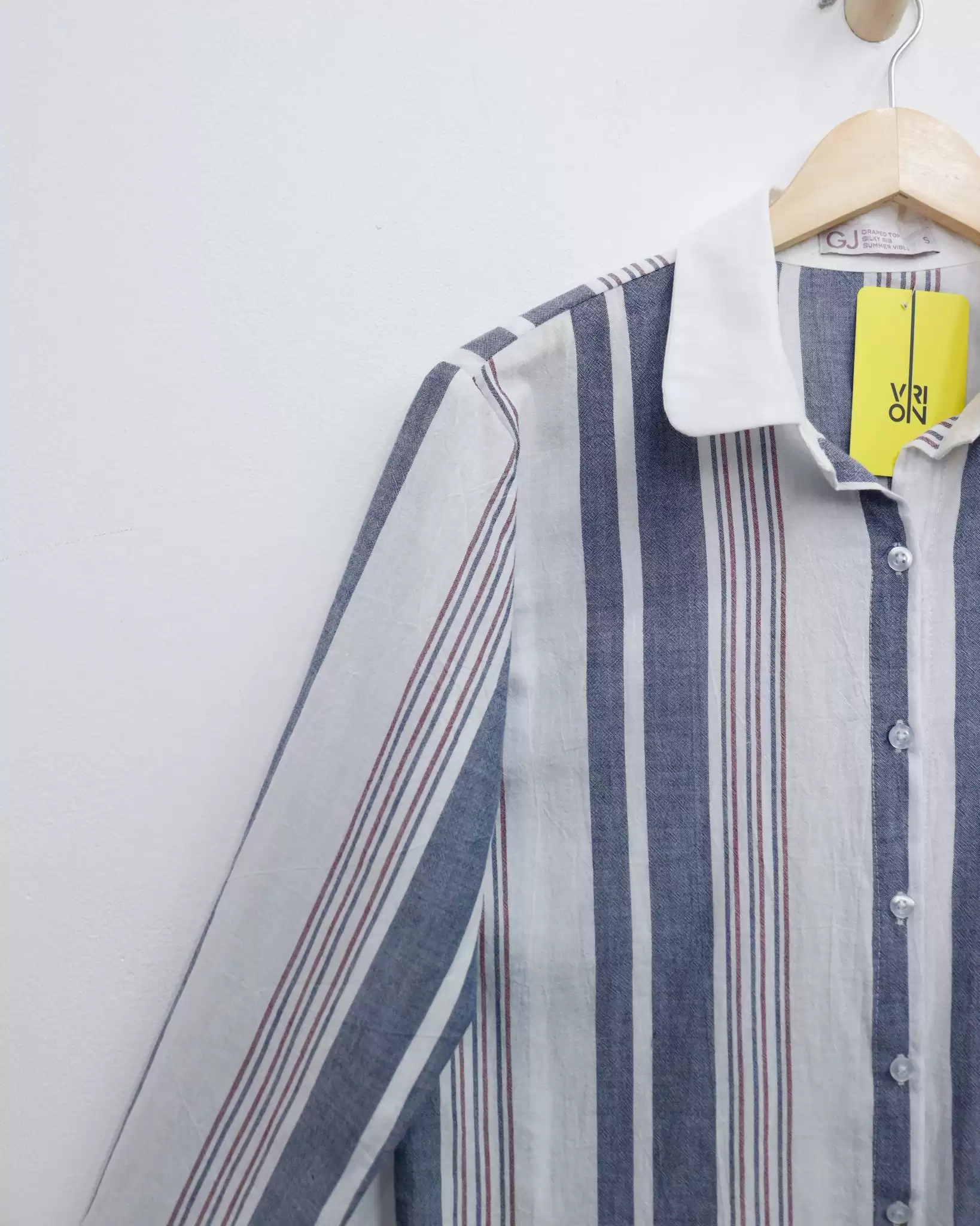 Áo sơ mi GJ cổ bẻ tay dài, phối sọc