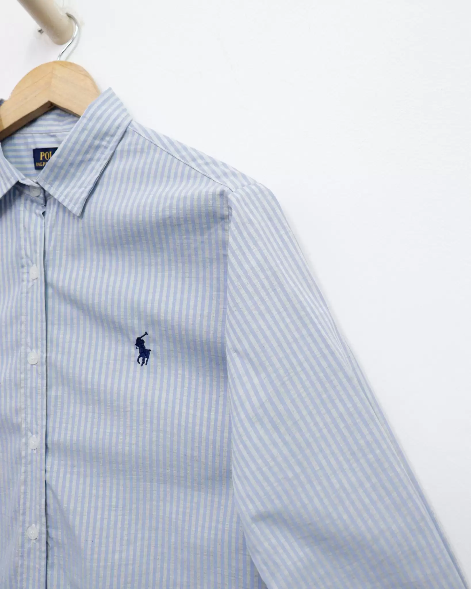 ÁO SƠ MI POLO – CỔ BẺ, TAY DÀI, SỌC DỌC, LOGO THÊU THANH LỊCH