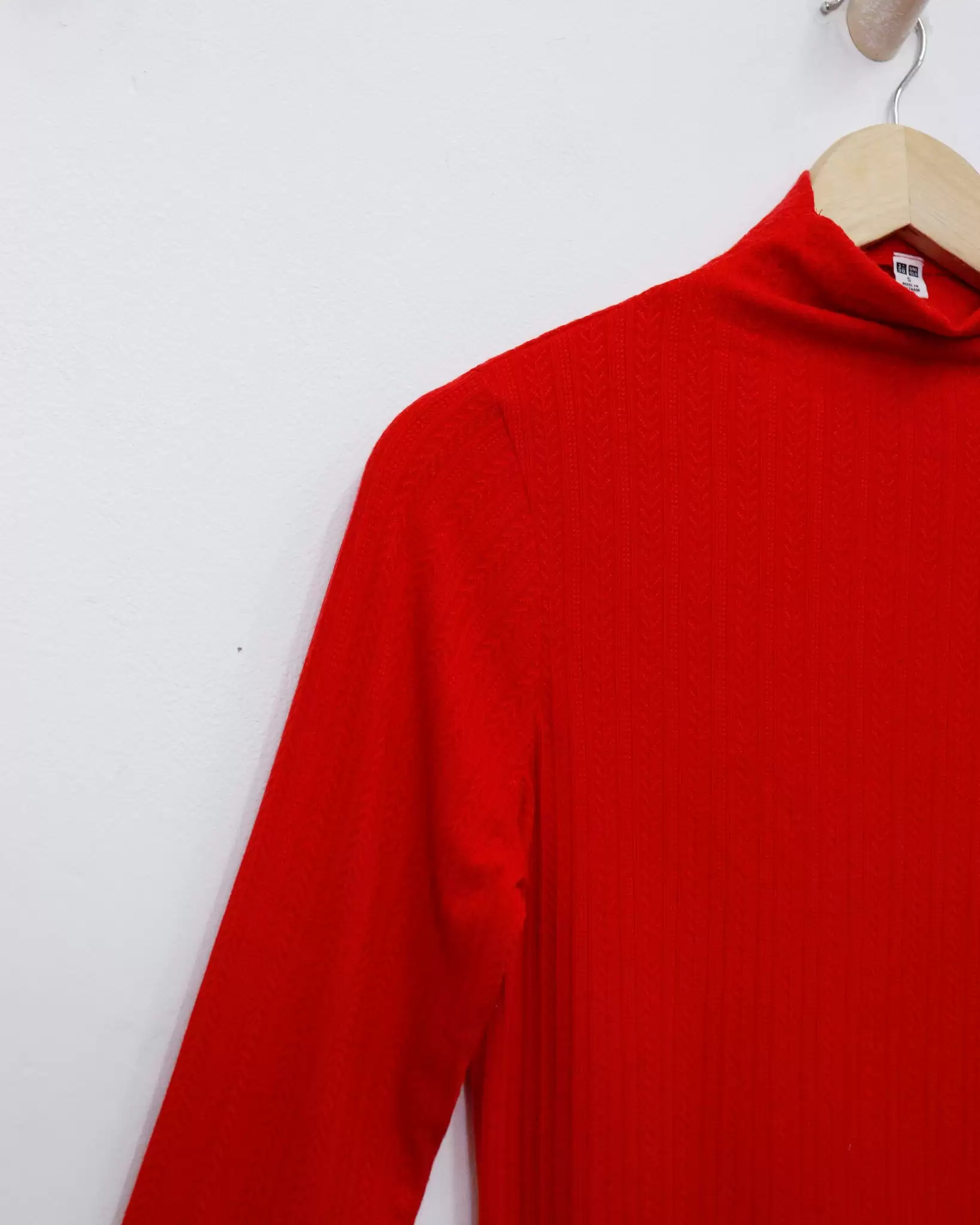 Áo thun cổ lọ UNIQLO, thiết kế tay dài phối kiểu hiện đại, mang nét thanh lịch và ấm áp. Form ôm vừa vặn, chất liệu thun mềm co giãn, giữ dáng tốt và tạo cảm giác thoải mái. Phần cổ lọ tinh tế giúp giữ ấm, dễ phối cùng áo khoác, chân váy hay quần tây cho phong cách tối giản và thời trang.