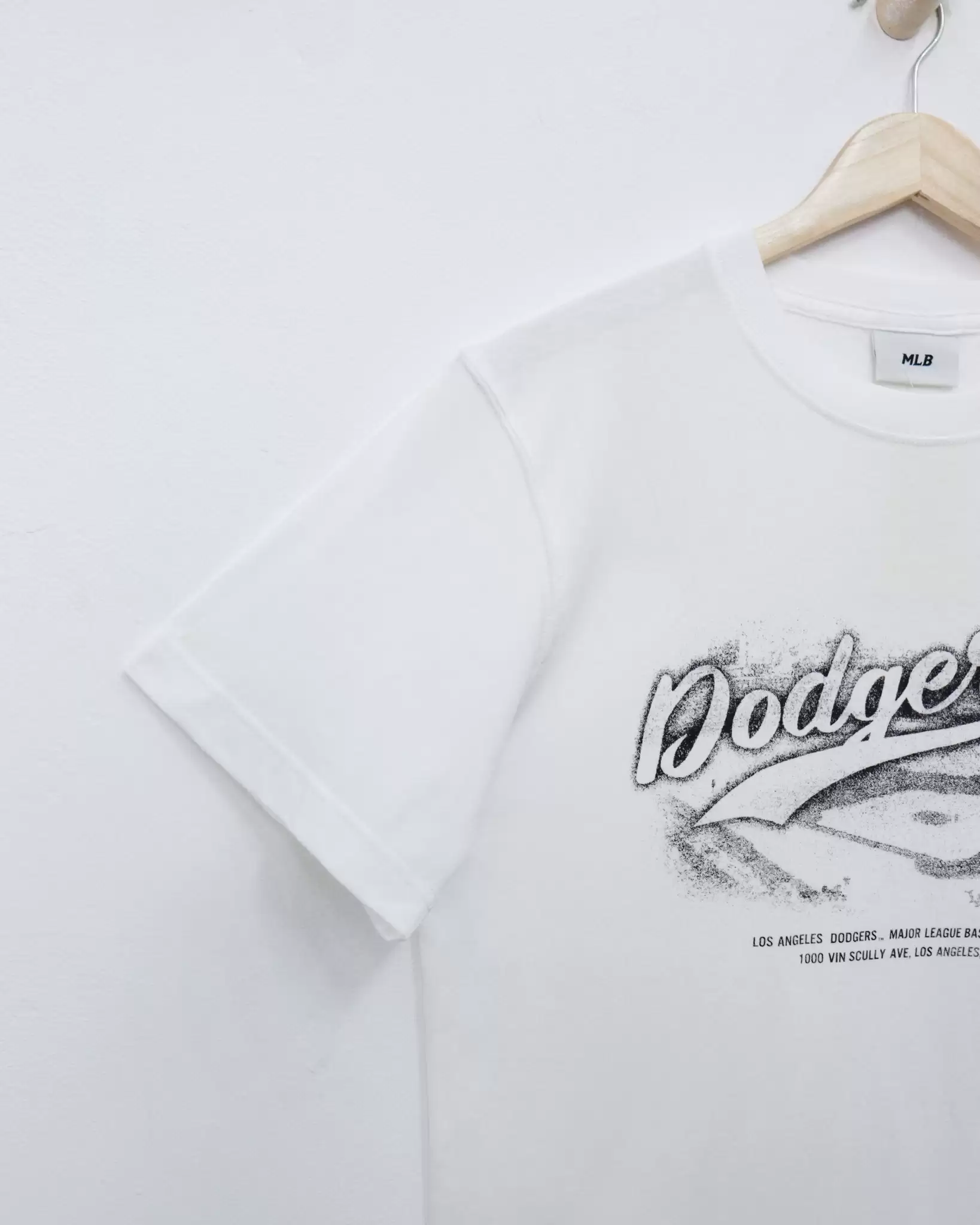 Áo thun MLB, cổ tròn tay ngắn chữ LA trắng