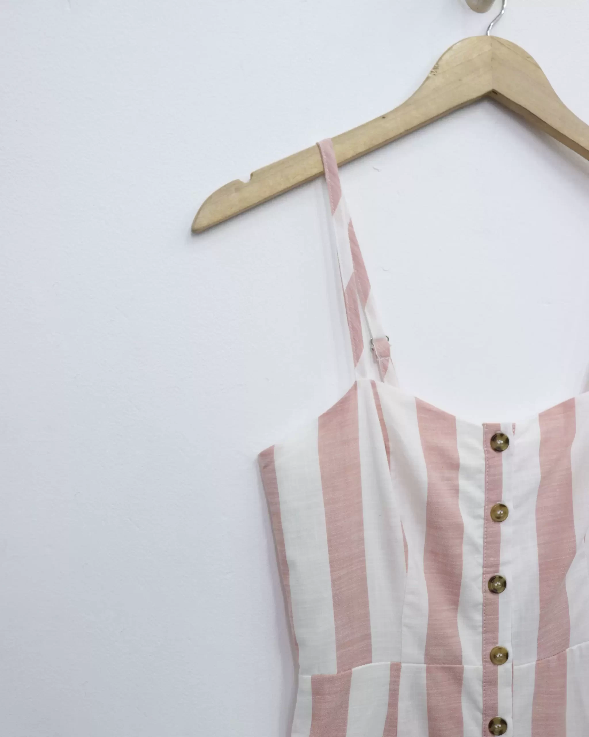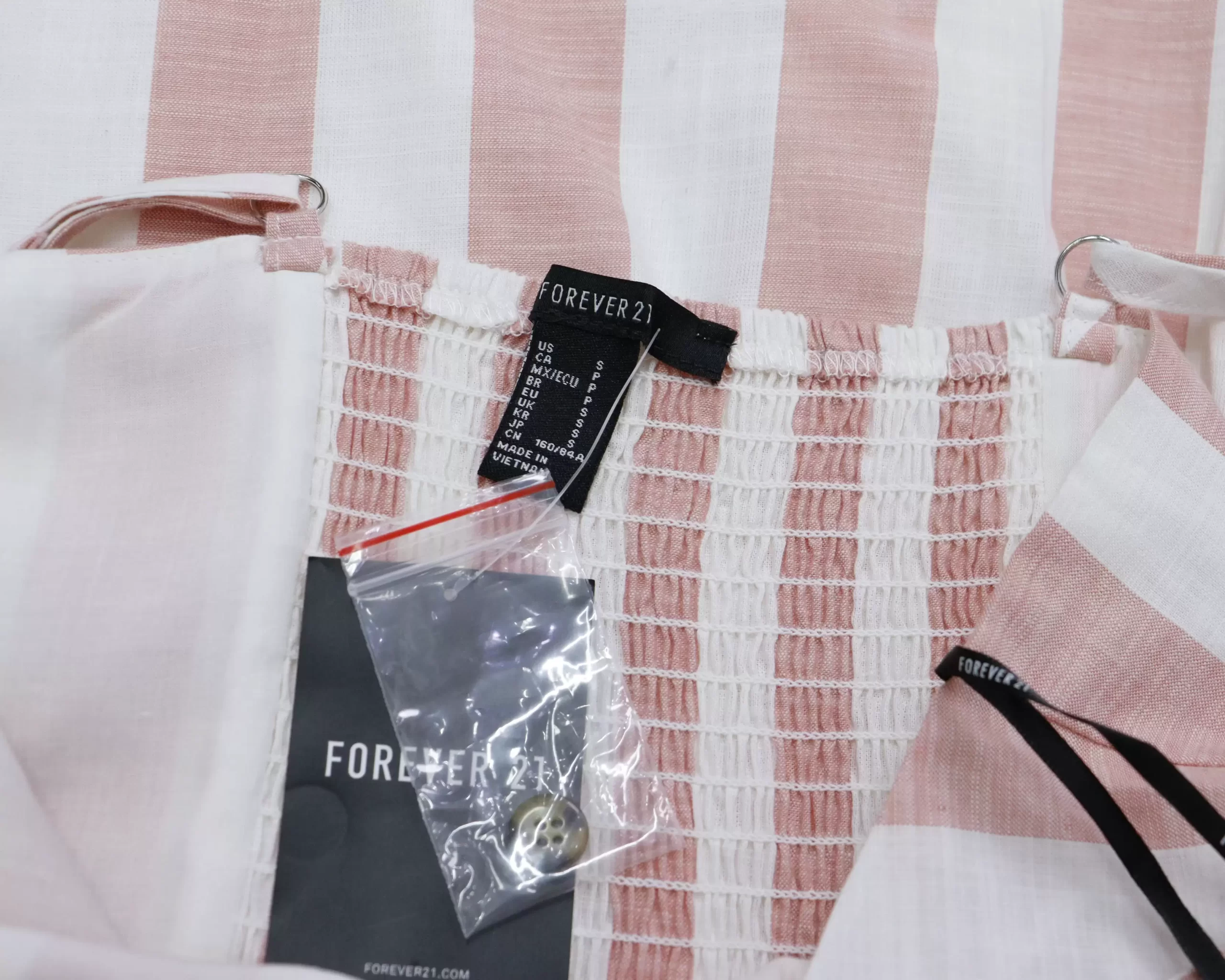 Đầm 2 Dây Forever 21 – Cài Nút, Phối Sọc, 2 Túi Trước