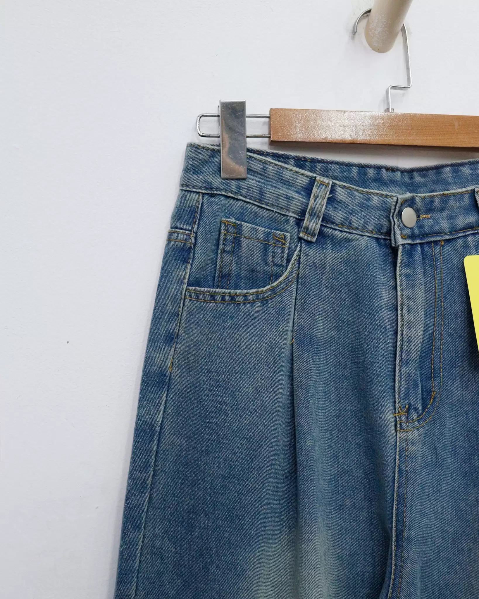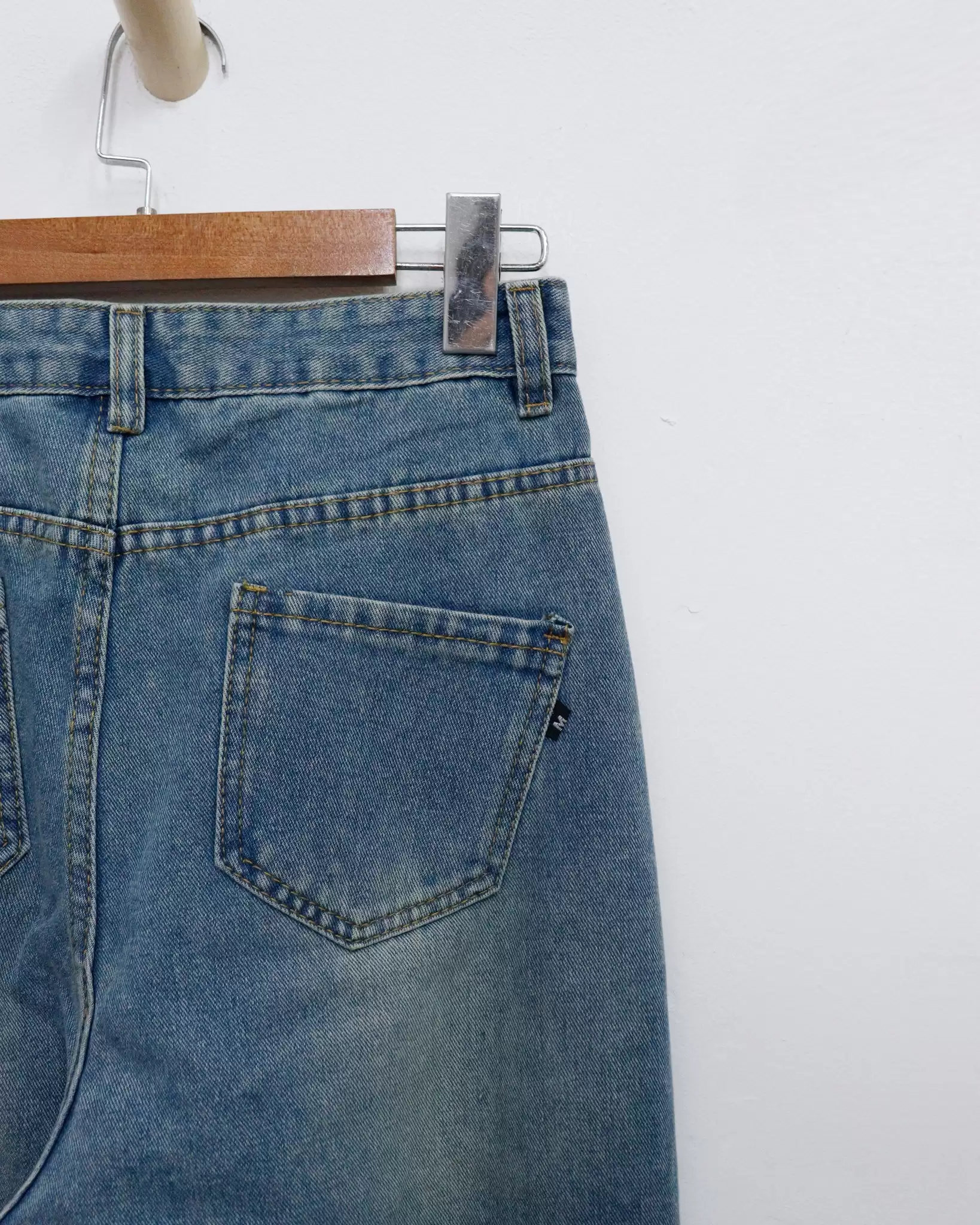 Quần jean xuất ống rộng túi sau kiểu xếp ly